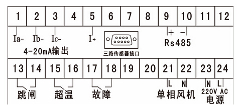 4、可實現(xiàn)風機啟停信號顯示輸出;超溫報警信號顯示輸出;超溫跳閘信號顯示輸出;傳感器開路及短路報警與輸出。