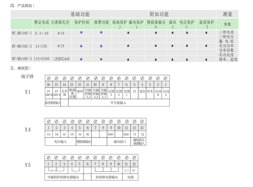 MT-MD140系列電動(dòng)機(jī)智能監(jiān)控器是一款智能化、數(shù)字化、網(wǎng)絡(luò)化的控制器。該產(chǎn)品基于微處理器技術(shù),將先進(jìn)的網(wǎng)絡(luò)通訊技術(shù)和分布式智能技術(shù)溶于MCC控制中心中, 集全面的電機(jī)智能保護(hù)、運(yùn)行狀態(tài)監(jiān)控、故障記錄及網(wǎng)絡(luò)通訊于一體;可以查看測(cè)量數(shù)據(jù)、開(kāi)關(guān)量輸入/輸出狀態(tài)、報(bào)警信息、故障信息管理、電機(jī)信息管理、參數(shù)設(shè)定和電機(jī)啟停等。并能滿足諸多啟動(dòng)方式,在低壓控制終端MCC柜和1/4單元及以上各種抽屜柜中可直接安裝使用。
