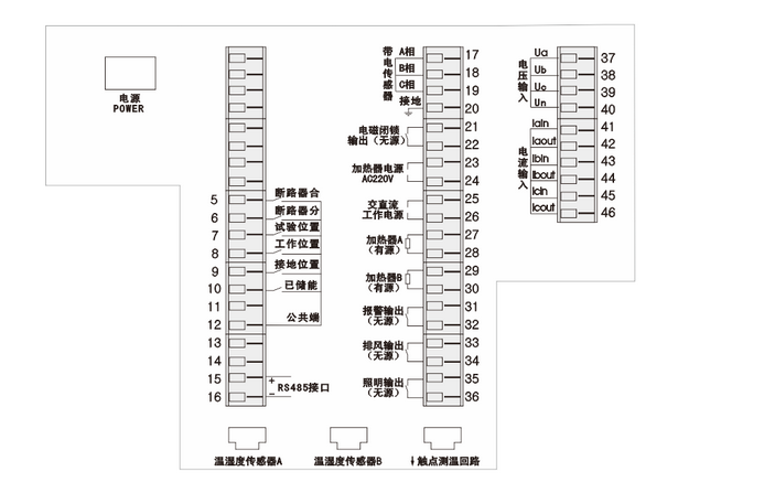 該產(chǎn)品功能強大,有帶電顯示,溫濕度數(shù)字顯示,三相觸頭溫度值顯示,自動加熱除濕控制,斷路器分合閘狀態(tài)指示,儲能、接地開關(guān)指示,手車位置指示,一次回路模擬圖,二次回路電壓數(shù)值顯示,人體感應(yīng)柜內(nèi)照明,智能語音防誤提示,語音帶電提示,分合閘回路指示,電壓、電流、有功功率、無功功率、功率因數(shù)、頻率測量以及RS485通訊接口等功能。