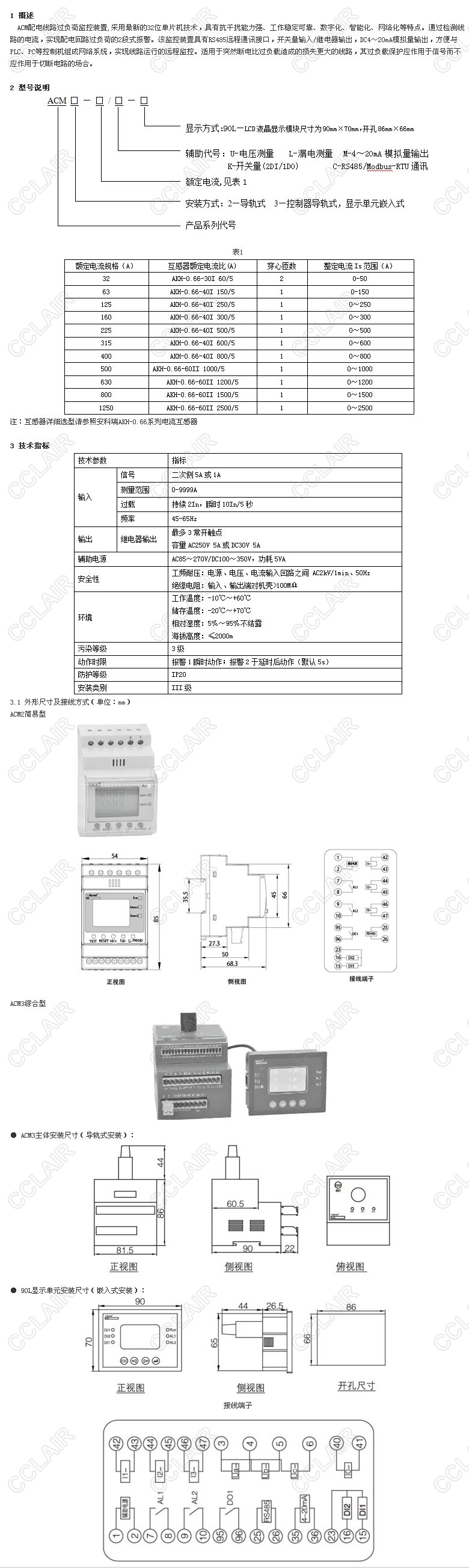 ACM2-32,ACM2-63,ACM2-500,ACM3-800,ACM3-1250,ACM3-32/U-90L,ACM,配電線路過負(fù)荷監(jiān)控裝置