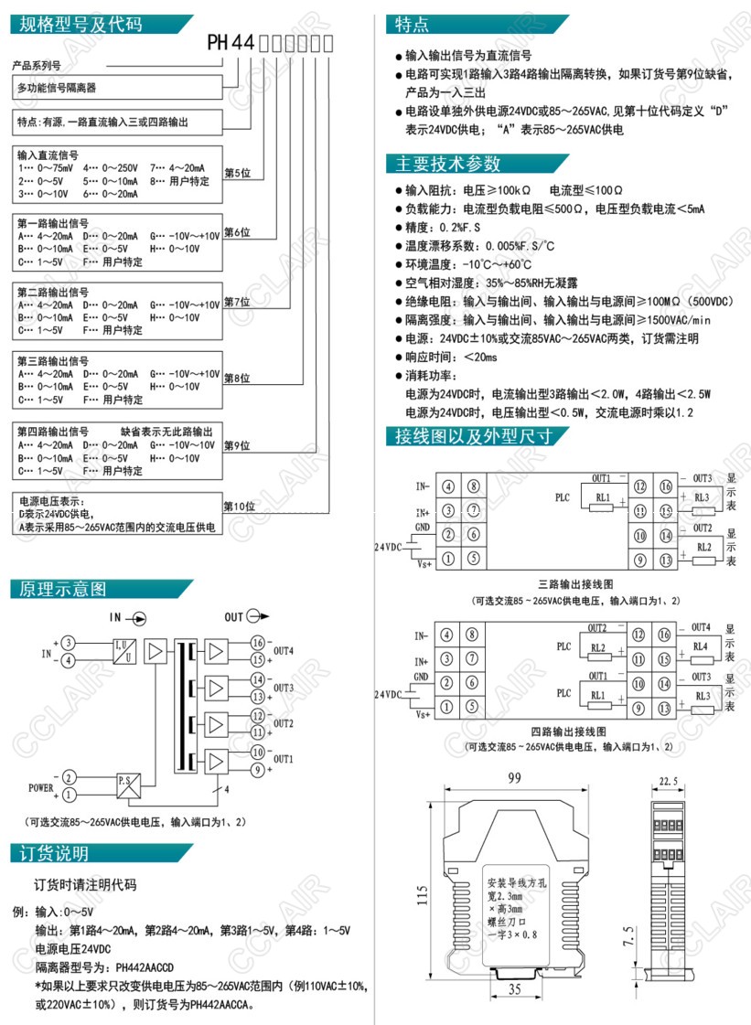 PH441ACB,PH441BGC,PH442AACCA,PH442AACCD,PH-44,有源直流型多路信號隔離分配器
