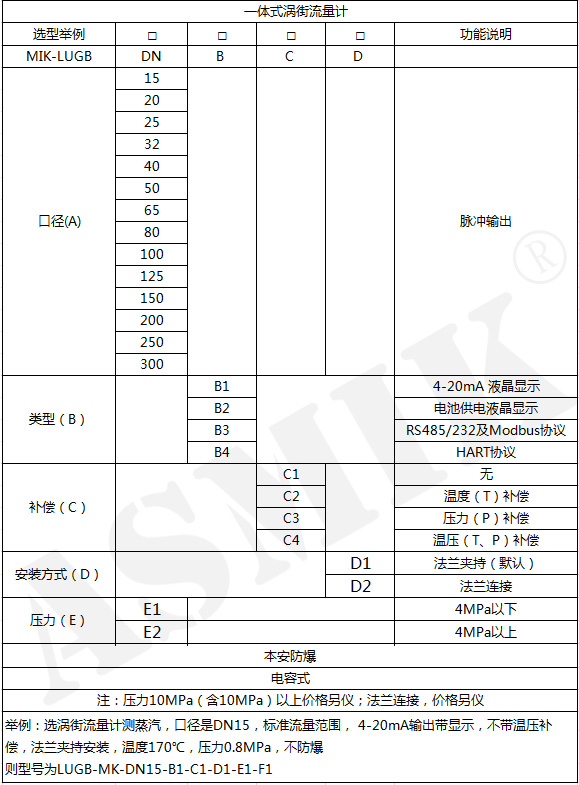 LUGB-MK-DN15-B1-C1-D1-E1-F1,MIK-LUGB渦街流量計(jì)MIK-LUGB-DN25,MIK-LUGB-DN40,MIK-LUGB-DN50,MIK-LUGB-DN265,MIK-LUGB-DN80,MIK-LUGB-DN100,MIK-LUGB-DN125,MIK-LUGB-DN150,MIK-LUGB-DN200,MIK-LUGB-DN250,MIK-LUGB-DN300,