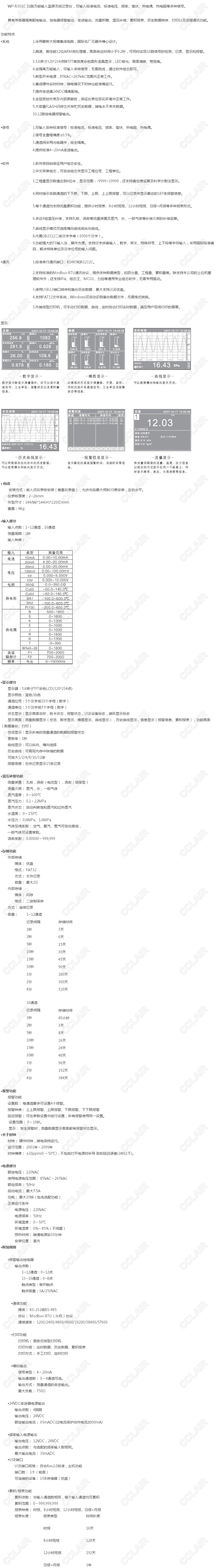 WP-R301C,藍(lán)屏無紙記錄儀