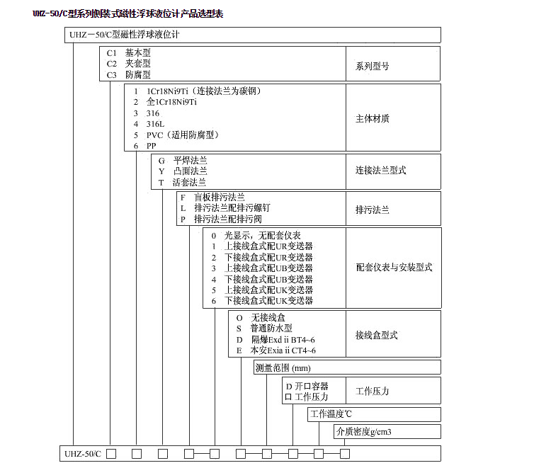 UHZ-50/C12TP-0O-3500-D-80℃-1.0UHZ-50/C1,UHZ-50/C2,UHZ-50/C3,側(cè)裝式磁性浮球液位計(jì)