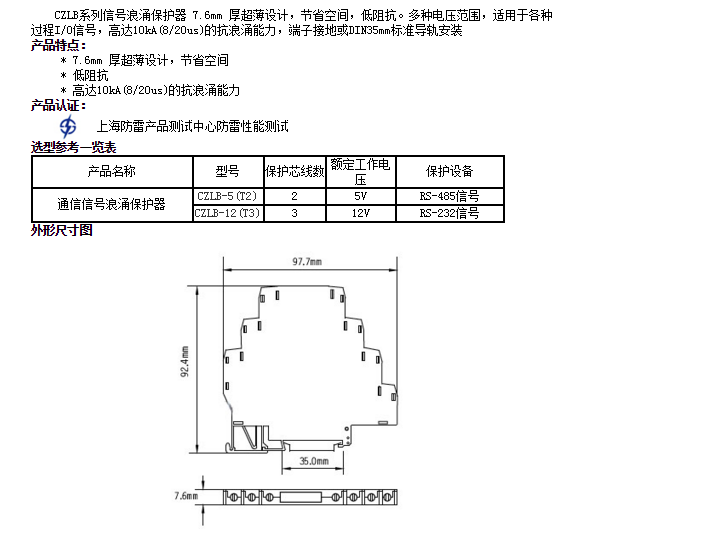 CZLB-5(T2),CZLB-12(T3),信號浪涌保護(hù)器