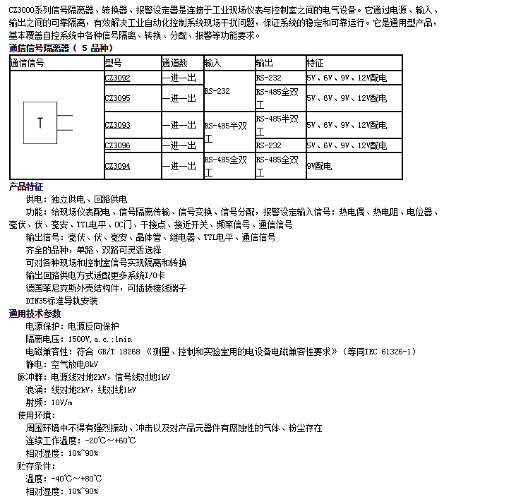 CZ3092,CZ3095,CZ3093,CZ3096,CZ3094,信號隔離器、轉換器、報警設定器