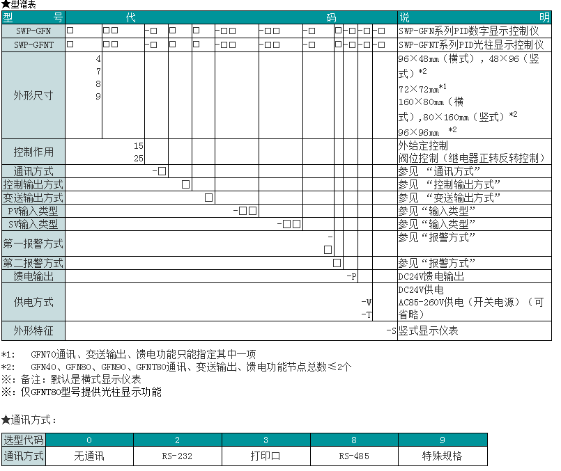 型號(hào): SWP-GFN415,SWP-GFN825,SWP-GFNT715,SWP-GFNT915,整定數(shù)字/光柱顯示控制儀