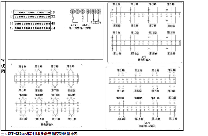 2、帶打印多路巡檢控制儀可選擇各輸入通道統(tǒng)一報警控制輸出或各輸入通道分別報警控制輸出。