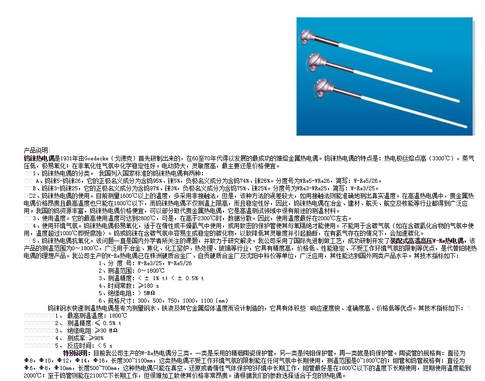 W-Re3/25,W-Re5/26,鎢錸熱電偶
