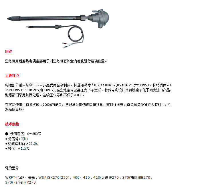 WRFT-400,WRFT-410,WRFT-420,WRFT-580,耐磨熱電偶