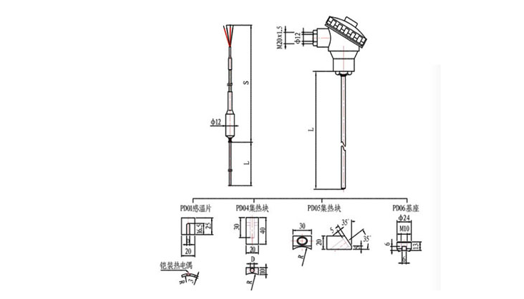 以鎧裝熱電偶配集熱塊為測(cè)溫元件用于測(cè)量屏過(guò)、高過(guò)、高再等金屬管壁溫度