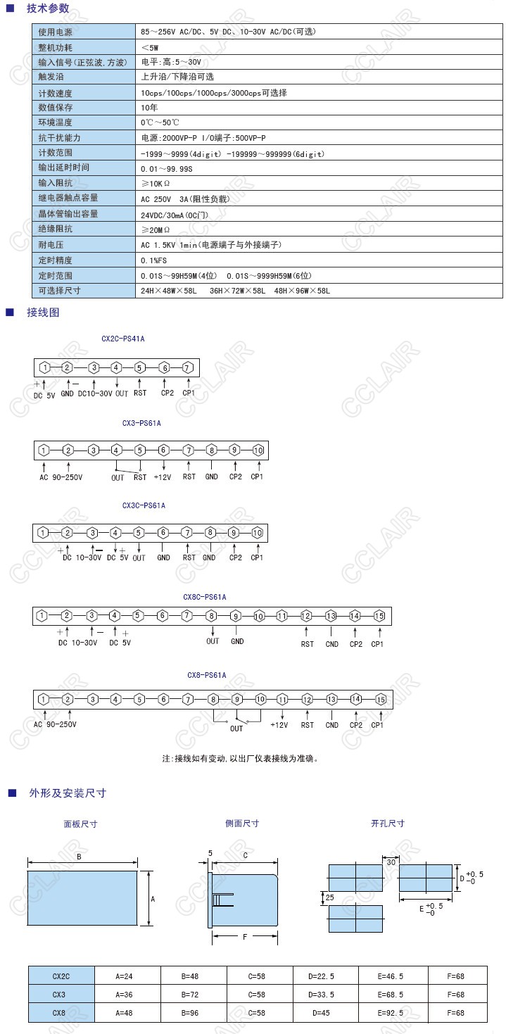 CX2C-PS41A,CX3C-PS61A,CX8C-PS61A,CX3-PS61A,CX8-PS61A,CX計(jì)數(shù)器/計(jì)米器/定時(shí)器