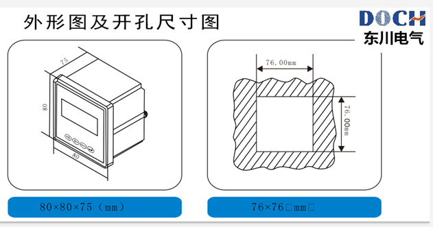 一.數(shù)顯單相電流表 產(chǎn)品概述 80方形 外型:80*80mm 開(kāi)孔:76*76mm