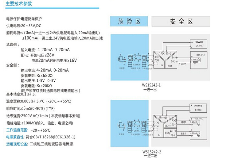 安全柵 輔助電源:DC24V 或AC220V工作電源,高精度:0.1%