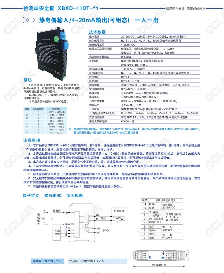 XBXD-11DT-1熱電偶輸入/4-20mA輸出(可組態(tài))(一入一出)