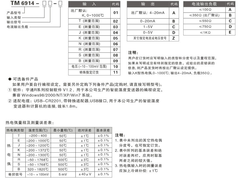TM6914 熱電偶輸入,智能溫度變送器 一入一出特性