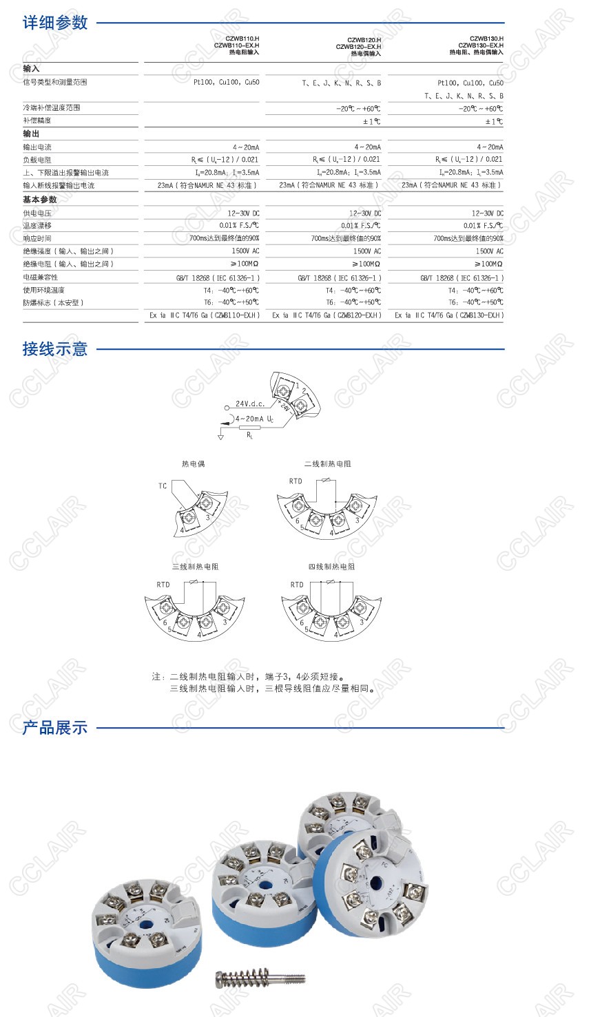 CZWB110-EX.H,CZWB110.H 熱電阻輸入、HART智能、本安防爆隔離溫度變送器
