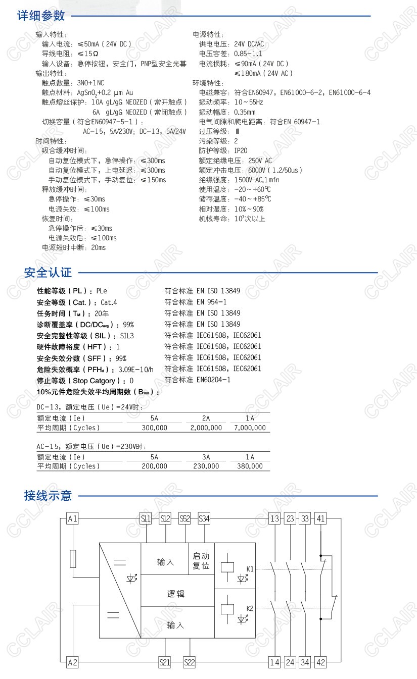 CZSR8001-3A1B-P是適用于安全光幕輸入,具有3路NO(常開)安全輸出觸點和1路NC(常閉)輔助輸出觸點的安全繼電器。它可選擇單雙通道操作,手動或自動復位。