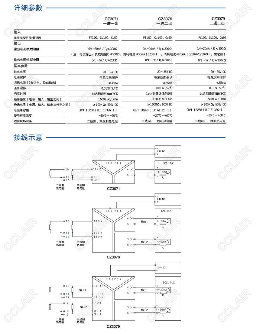 CZ3071 一進一出 熱電阻輸入隔離器 信號類型和測量范圍可編程,轉(zhuǎn)換精度高達0.1%,超量程、斷線檢測與報警功能 CZ3076 一進二出 熱電阻輸入隔離器 信號類型和測量范圍可編程,轉(zhuǎn)換精度高達0.1%,超量程、斷線檢測與報警功能 CZ3079 二進二出 熱電阻輸入隔離器 信號類型和測量范圍可編程,轉(zhuǎn)換精度高達0.1%,超量程、斷線檢測與報警功能