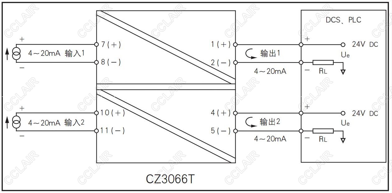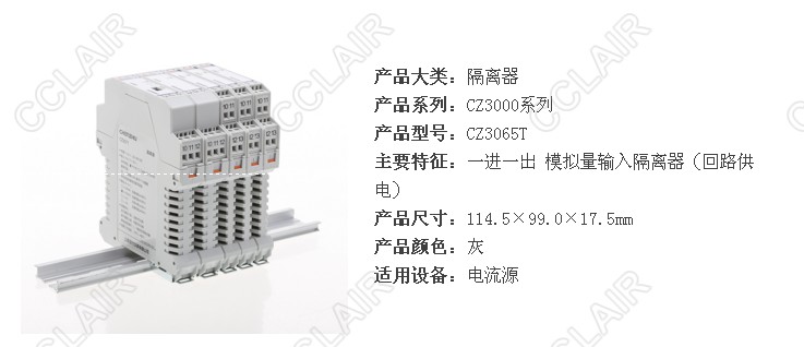 CZ3065T 一進一出 模擬量輸入、輸出隔離器(回路供電) 適用于電流源信號輸入,輸出回路供電,無需獨立電源供電。 CZ3066T 二進二出 模擬量輸入、輸出隔離器(回路供電) 適用于電流源信號輸入,輸出回路供電,無需獨立電源供電.
