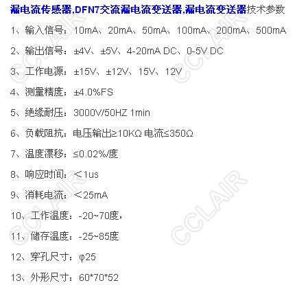 SY-DFN7-DAA500,SY-DFN7-DAA500B,SY-DFN7-DAA500C,SY-DFN7-DAA500D,DFN7交流漏電流變送器