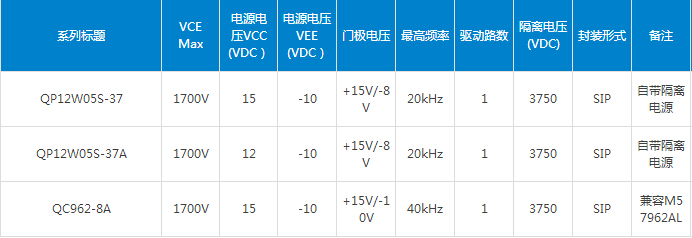 IGBT/LED驅(qū)動(dòng)器QC系列為混合集成型驅(qū)動(dòng)器,可應(yīng)用于任何需要柵極放大驅(qū)動(dòng)的場(chǎng)合。產(chǎn)品通過(guò)高速光耦來(lái)實(shí)現(xiàn)功率半導(dǎo)體器件與控制電路之間的安全電氣隔離,開(kāi)關(guān)頻率高達(dá)20KHZ,產(chǎn)品內(nèi)部含短路保護(hù)與故障輸出、過(guò)流故障時(shí)輸出軟關(guān)斷及定時(shí)復(fù)位等功能。