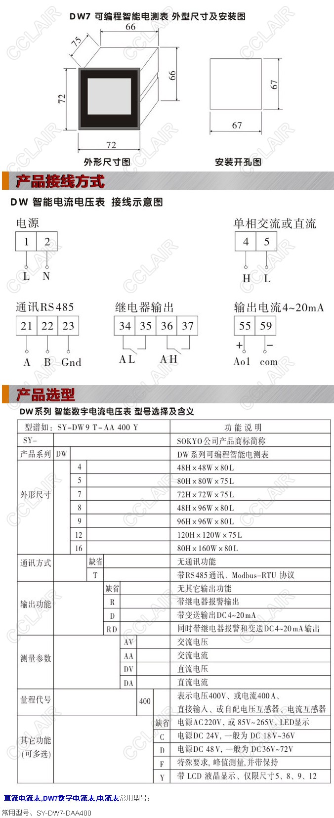 SY-DW7-DA400,SY-DW7-DA400C,SY-DW7-DA400D,DW7-DA400,DW7-DA400C,DW7數字電流表