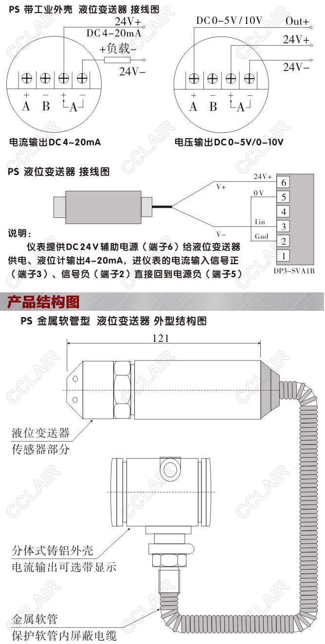 SY-PS1300R-5mH2O,SY-PS1300R-5mH2O-GF,PS1300R-5mH2O,PS1300R金屬軟管液位計(jì)