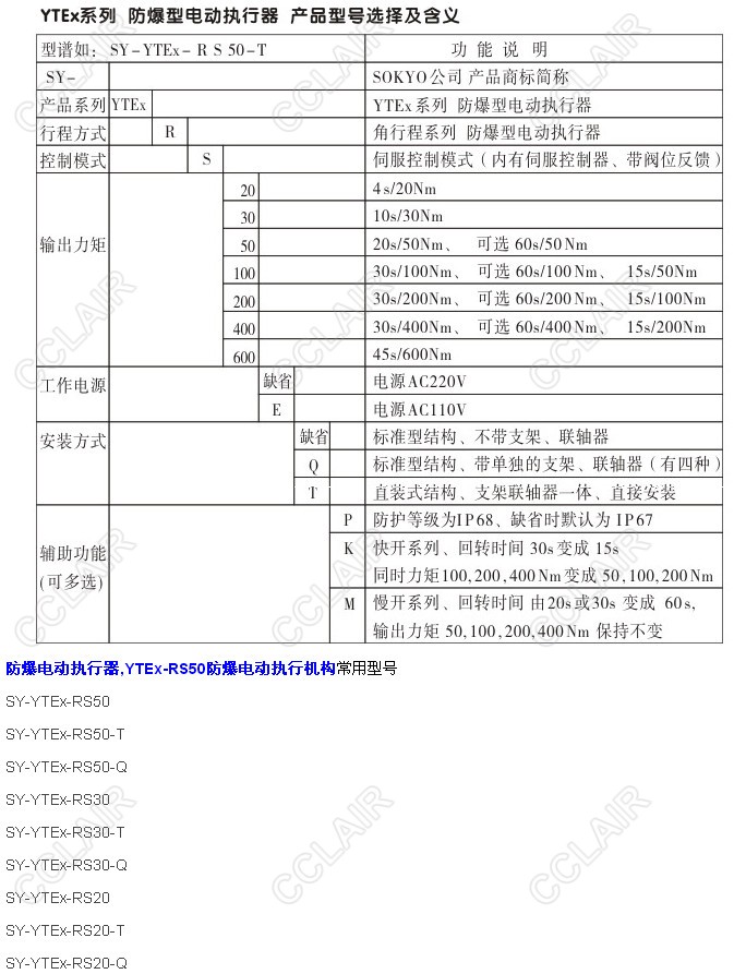 SY-YTEX-RS50,SY-YTEX-RS50-T,SY-YTEX-RS50-Q,YTEX-RS50防爆電動執(zhí)行機構