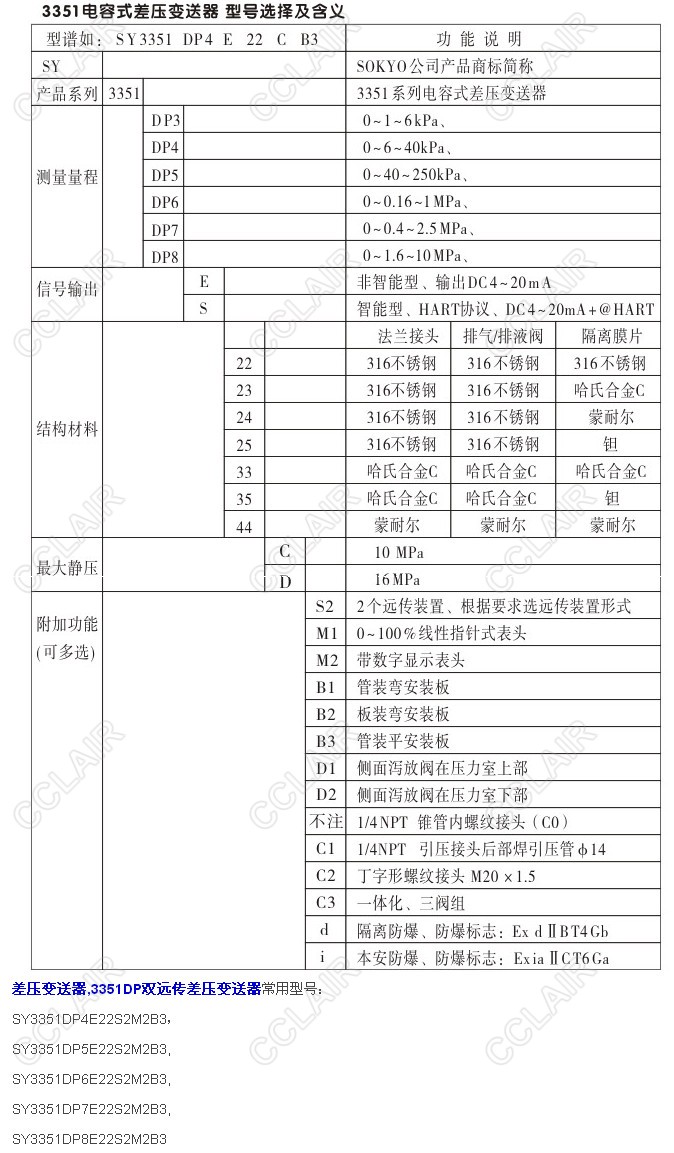 SY3351DP4E22S2M2B3,SY3351DP5E22S2M2B3,3351DP雙遠傳差壓變送器