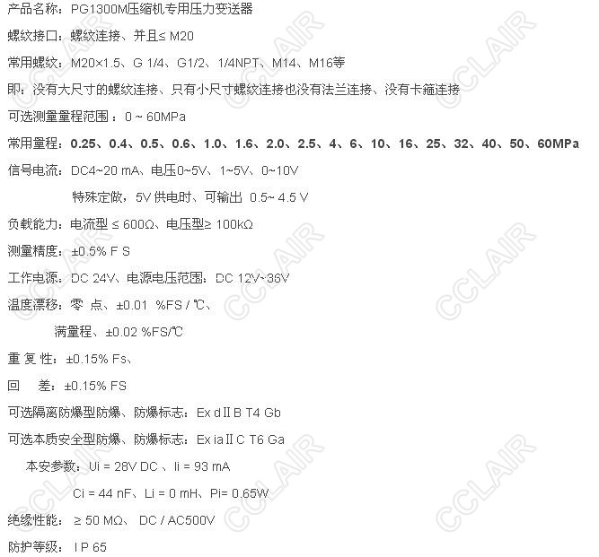 SY-PG1300M-0.25MPa,SY-PG1300M-0.4MPa,SY-PG1300M-0.5MPa,PG1300M壓縮機(jī)專用壓力傳感器