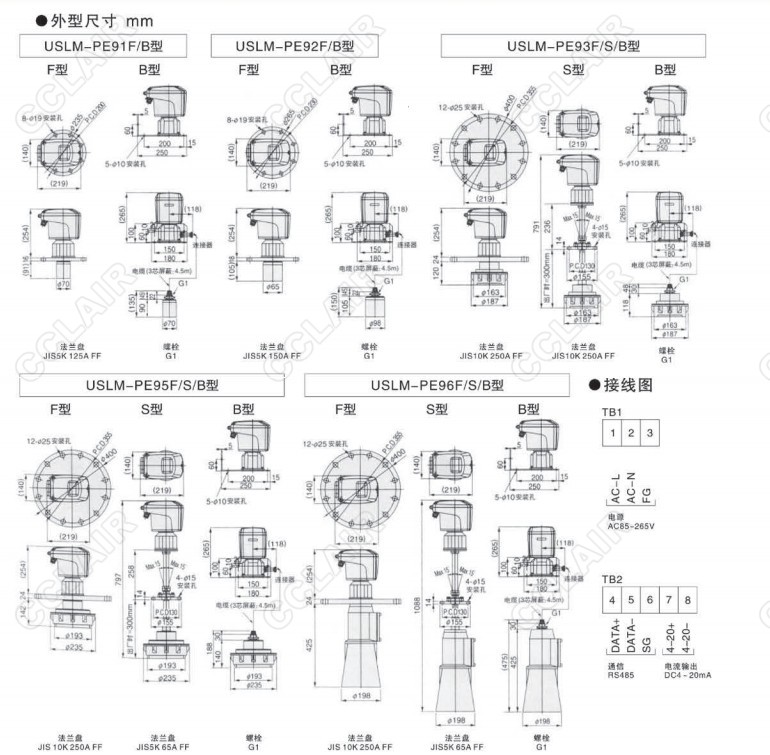 USLM,USLM-PE91F/B,USLM-PE92F/B,USLM-PE93F/S/B,USLM-PE95F/S/B,超聲波料位計(jì)