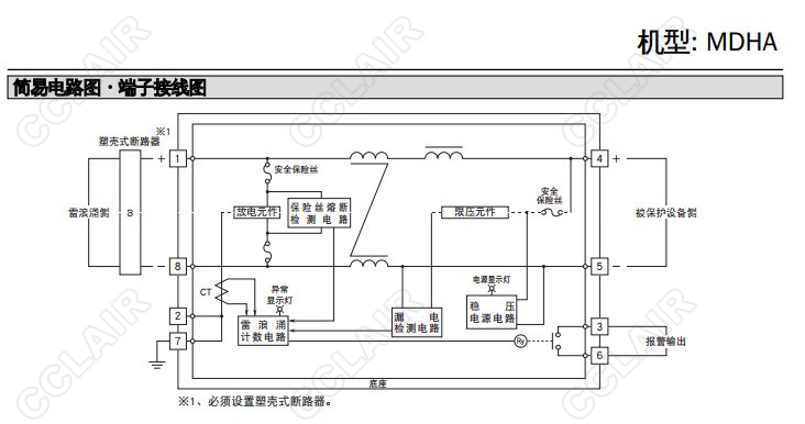 MDHA-12/MDHA-24,直流電源用 最大負(fù)載5A 插入型 壽命顯示功能避雷器