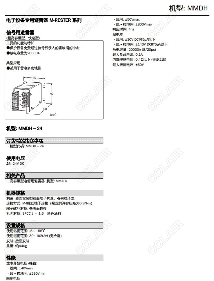 MMDH-24,4-20mA直流、脈沖信號用 超高容量型 快速型避雷器