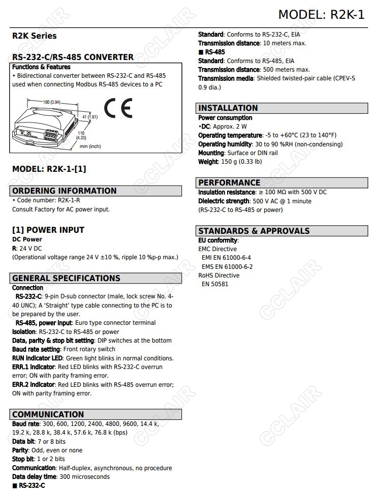 R2K-1,R2K-1-R, RS-232C/RS-485