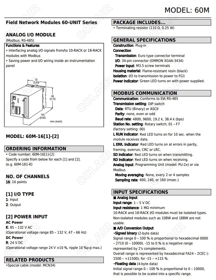 60M,60M-161-K,60M-161,60M-162,模擬量I/O模塊