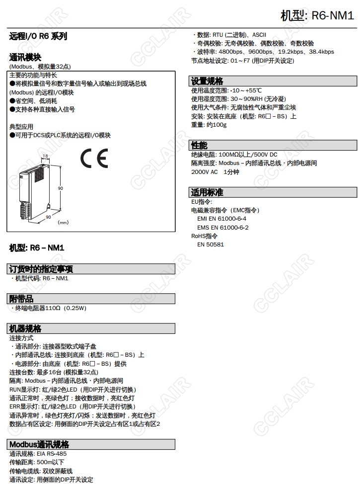 R6-NM1 Modbus通訊模塊32點模擬量信號