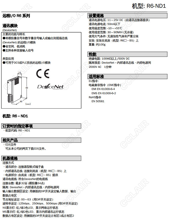 R6-ND1 DeviceNet通訊模塊模擬量和開關量I/O信號自由組合