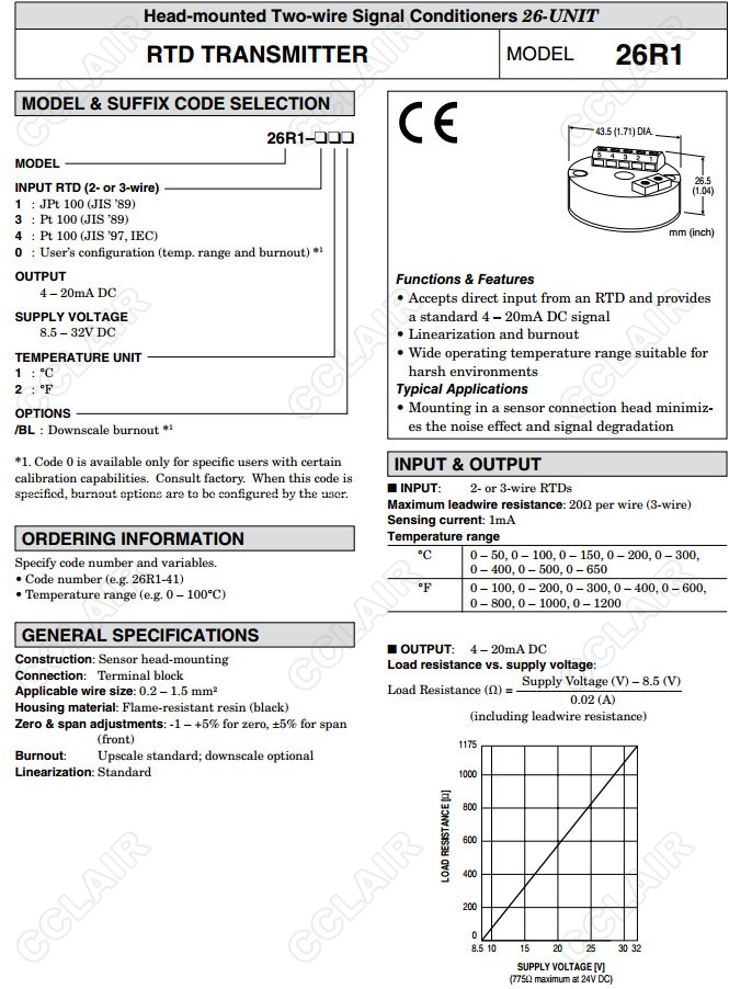 26R1,26R1-1,26R1-3,26R1-4,26R1-0,熱電阻信號變換器