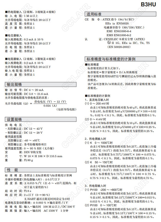 B3HU,B3HU-0,B3HU-1,B3HU-2,2線制萬能信號溫度變換器(本質(zhì)安全型防爆、支持HART通訊)