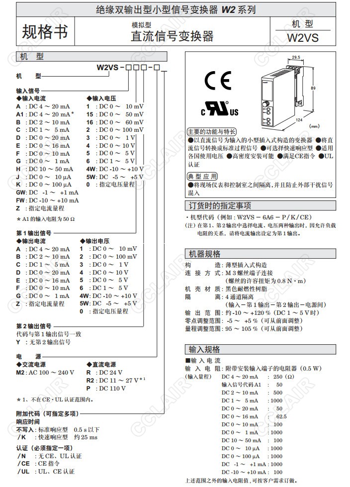 W2VS,W2VS-6A6-P/K/CE,W2VS-A,W2VS-A1,W2VS-B,W2VS-C,W2VS-D,W2VS-E,直流信號(hào)變換器(模擬型)