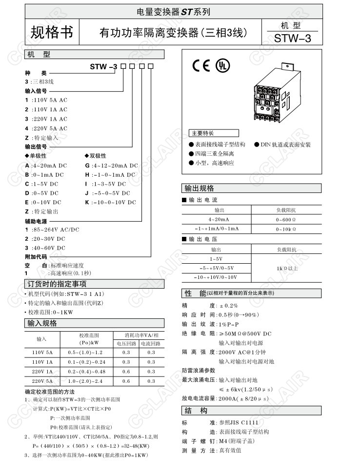 STW-3,STW-3 1 A,STW-3 2 A,STW-4 1 A,STW-3 Z A,有功功率隔離變換器(三相3線)