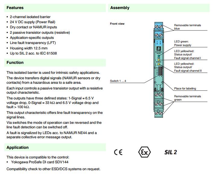 KCD2-SON-Ex2.R1,開關(guān)量輸入安全柵
