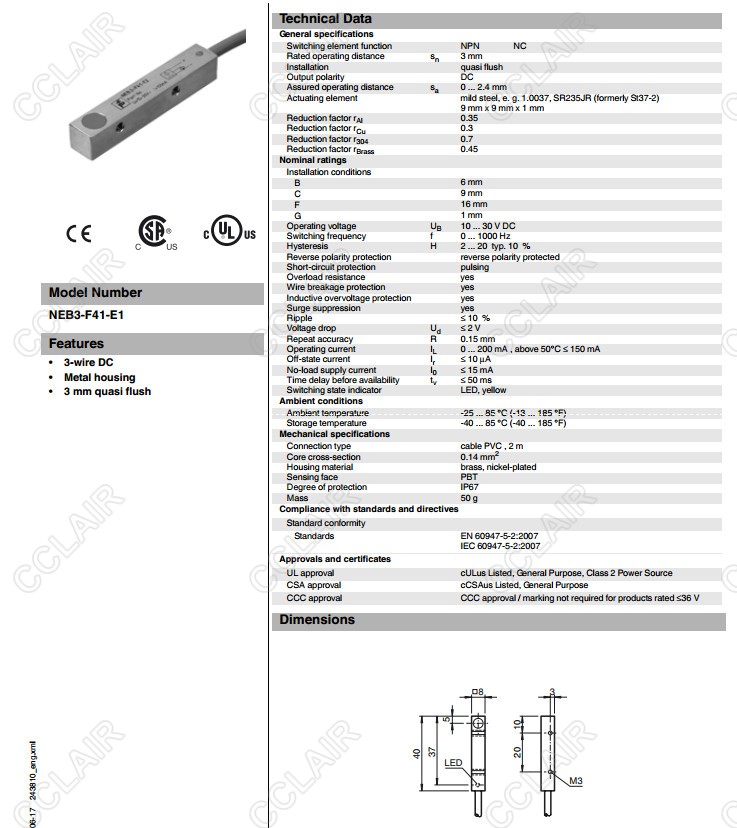 NEB3-F41-E0,NEB3-F41-E1,電感式接近開關