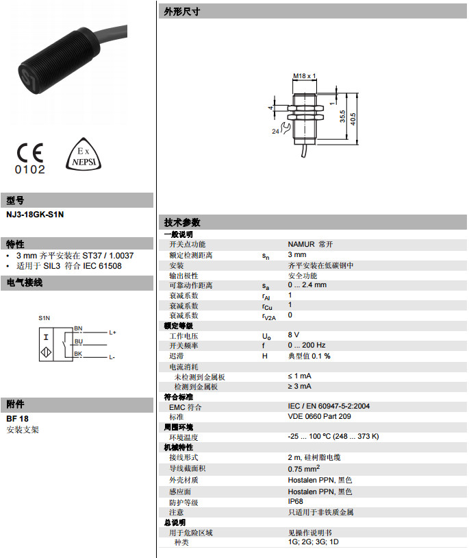NJ3-18GK-S1N電感式接近開(kāi)關(guān)