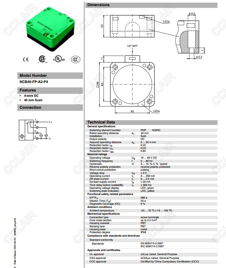NCB40-FP-A2-P2,NCB40-FP-A2-P4,電感式接近開關(guān)