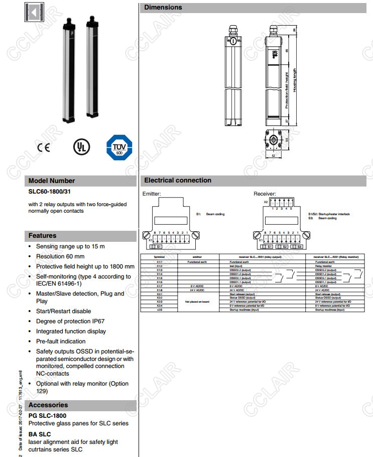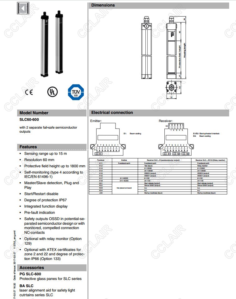 SLC60-1800/31,SLC60-300,SLC60-300-S,SLC60-300/31,SLC60-600,安全光柵