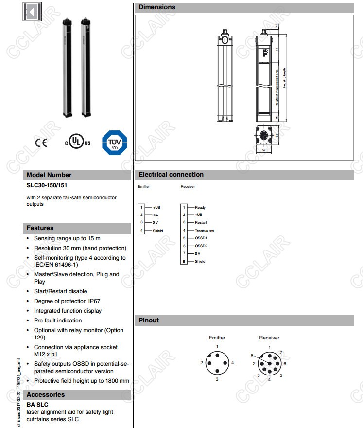 SLC30-150/151,SLC30-1500/129/151,SLC30-1500/151,SLC30-1650/129/151,安全光柵