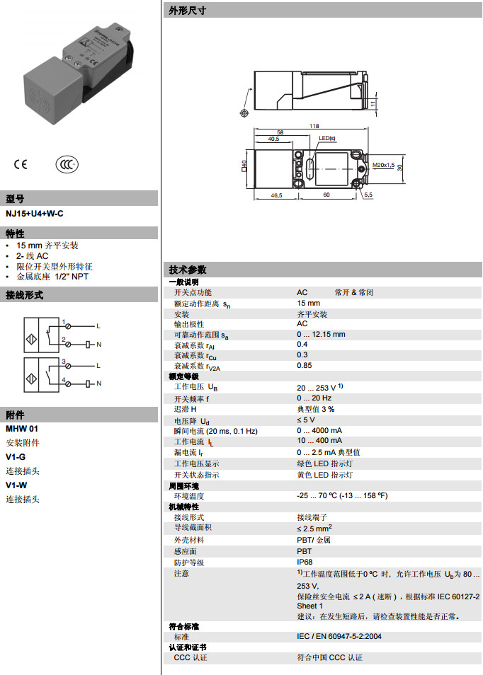 NJ15+U4+W-C電感式接近開(kāi)關(guān)