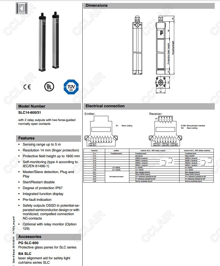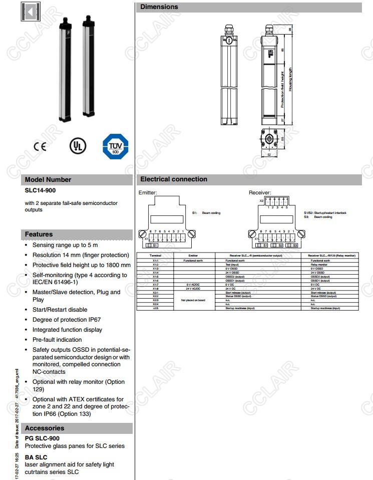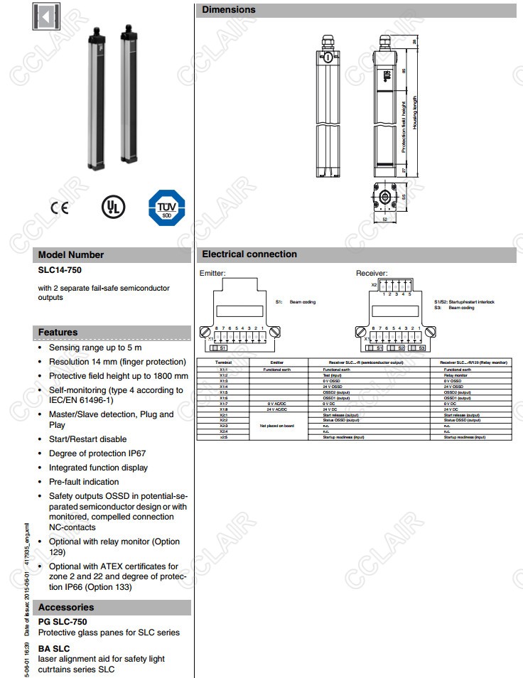 SLC14-600/31,SLC14-750,SLC14-750/31,SLC14-900,安全光柵